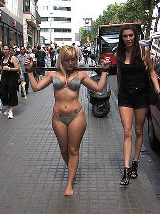 In which blonde Spanish beauty Yillie Fresh gets taken out for some public bondage and al fresco sex: