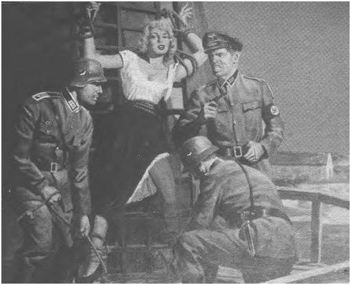 I assume these Nazi goons have a good reason for stringing this blonde up to the side of a lighthouse, right?