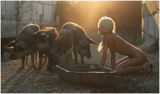 Her master says it took her three days before she got hungry enough to stick her face in the pig trough with the rest of the animals: